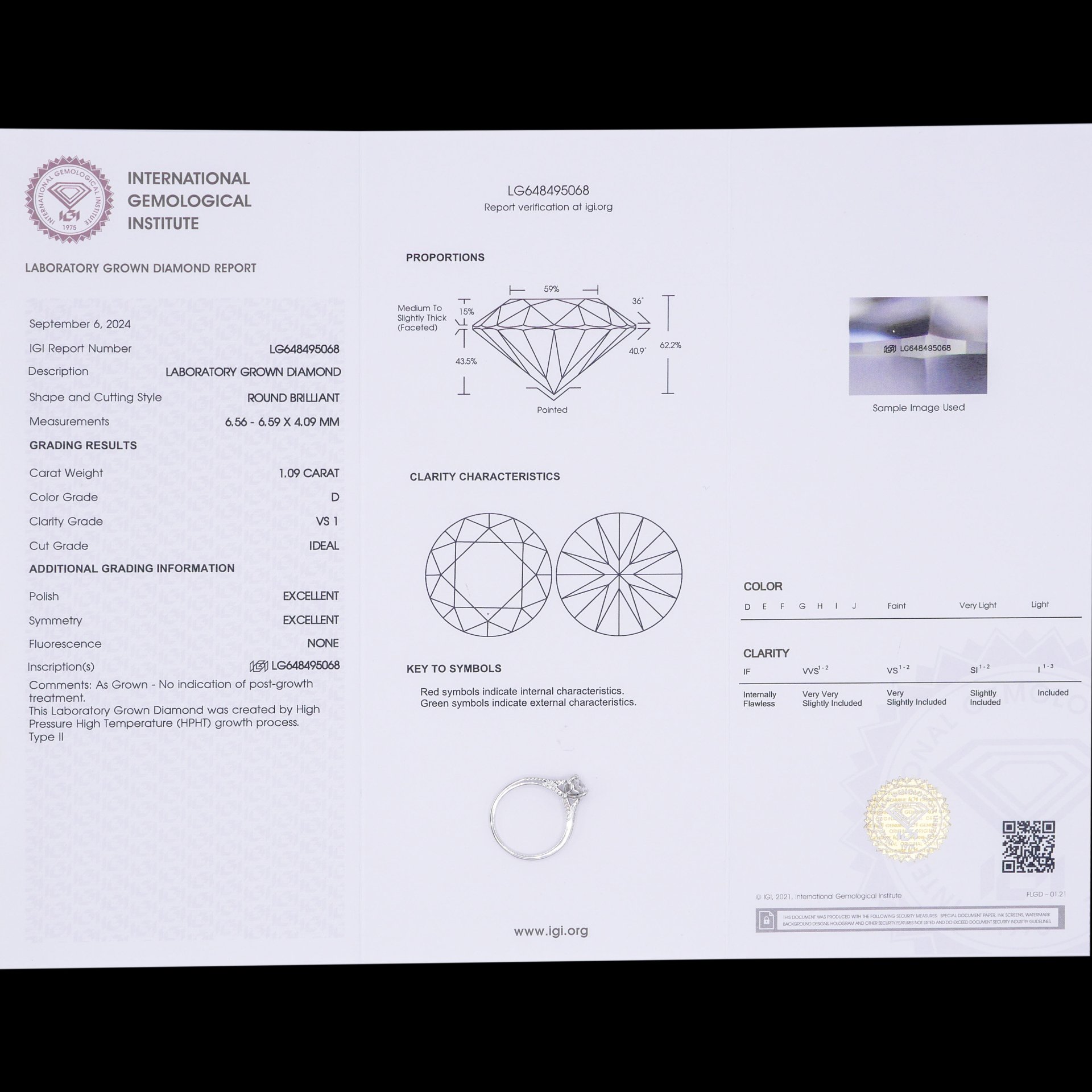 9K White Gold (2.63g.), Laboratory Grown Diamond (0.14ct.) (Jewelry Weight = 1.23 ct.), Laboratory Grown Diamond with International Gemological Institute (IGI) Laboratory Grown Diamond Report No. LG648495068