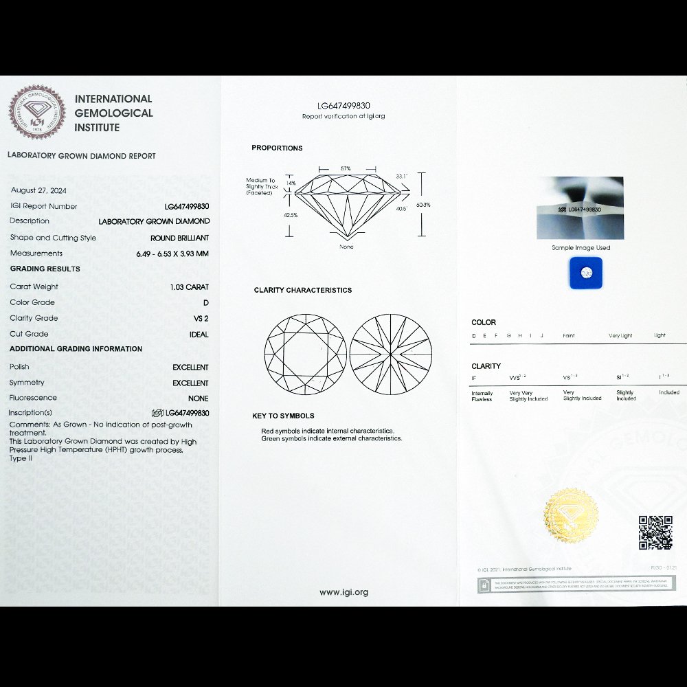 Laboratory Grown Diamond Report No. LG647499830 | |