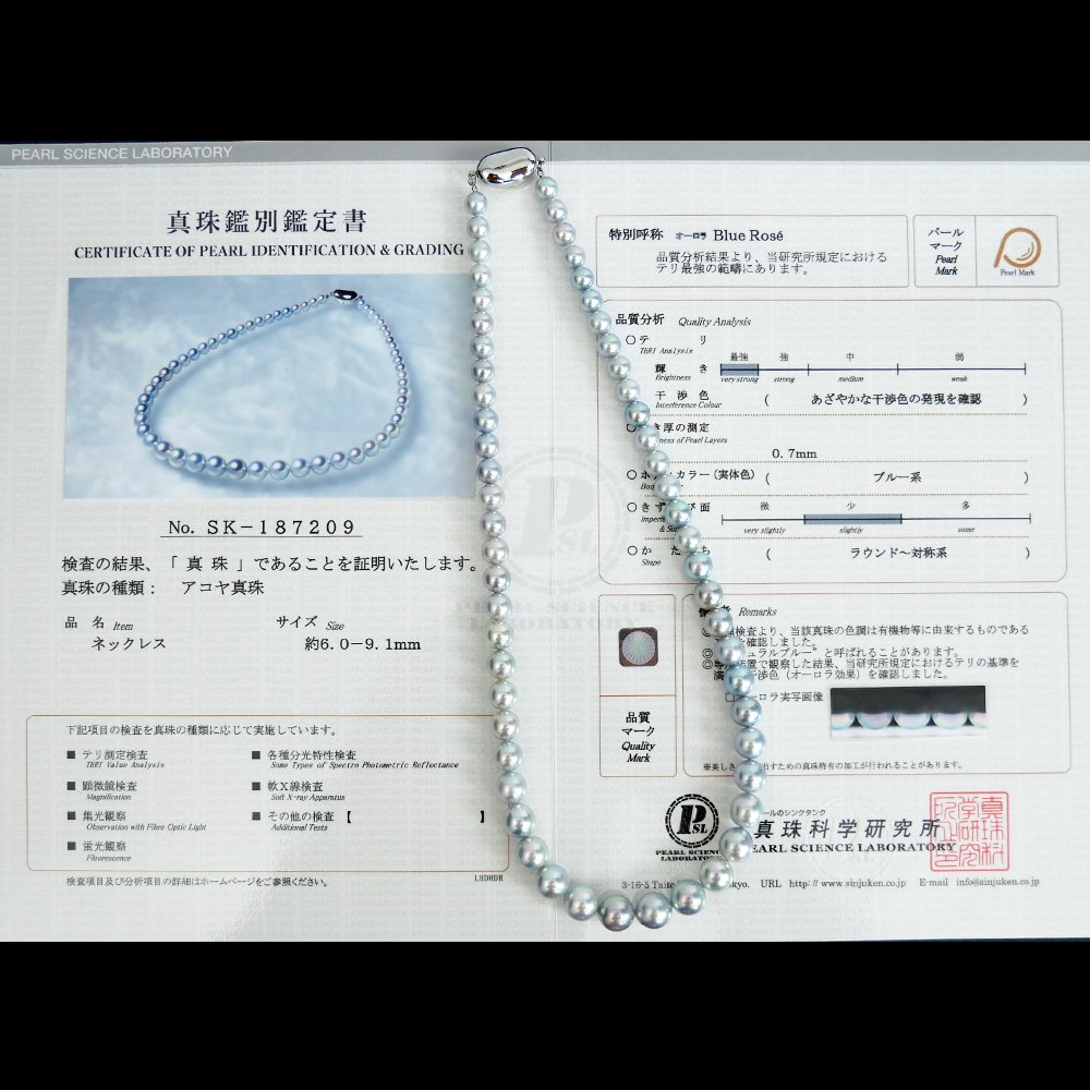 925 Sterling Silver,Push Stick Clasp with Certificate of Pearl Identification & Grading No. SK-187209