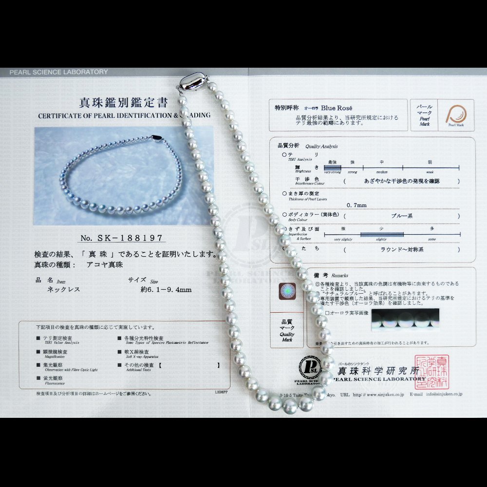 925 Sterling Silver,Push Stick Clasp with Certificate of Pearl Identification & Grading No. SK-188197