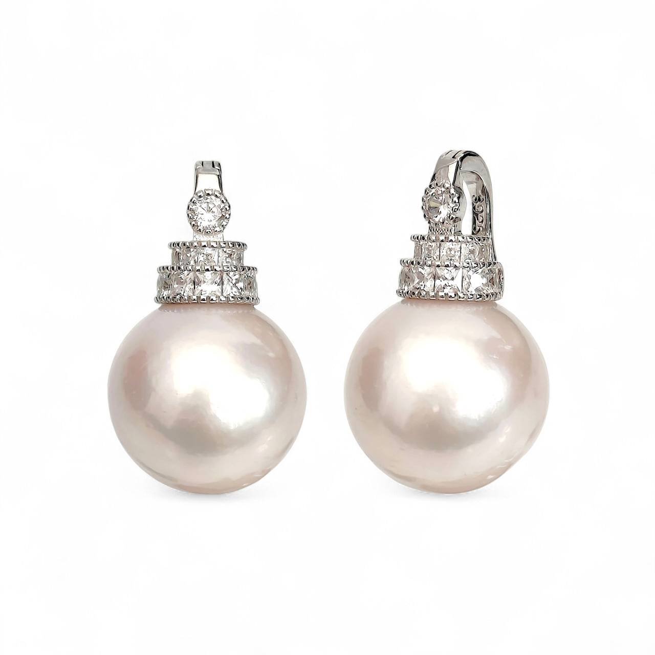 Approx. 16.0 mm, Shangri - La Lot, Edison Pearl, Double Layers Umbrella Cup CZ Paved Pearl Hinge Clasp Pendant