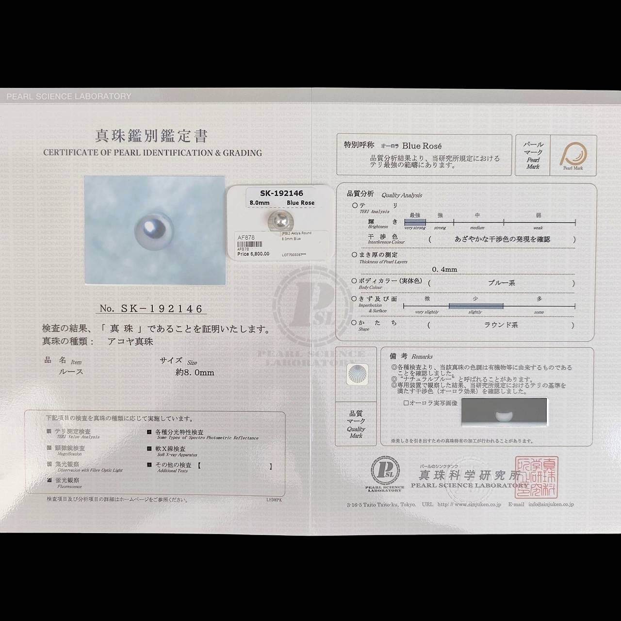 Undrilled Pearl with Certificate of Pearl Identification & Grading No. SK-192146