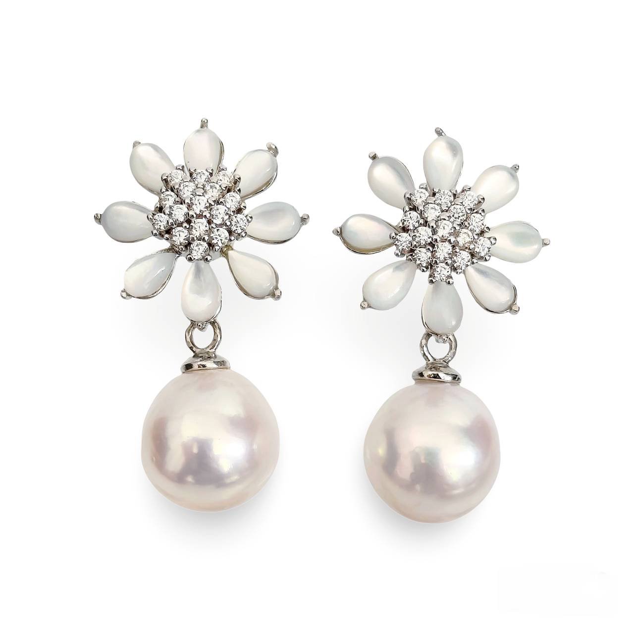 925 Sterling Silver, Mother of Pearl (MOP), Cubic Zirconia (CZ)
