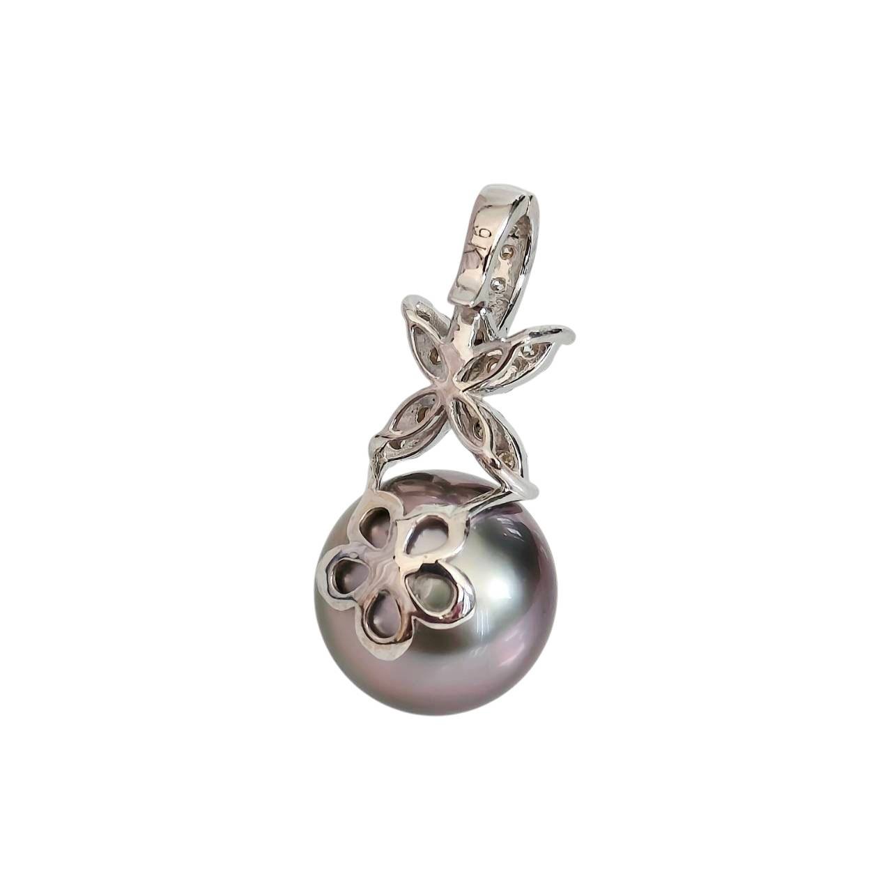 10.3 mm, Tahitian Pearl, West Indian Jasmine Diamond Paved Pearl Hinge Clasp Pendant