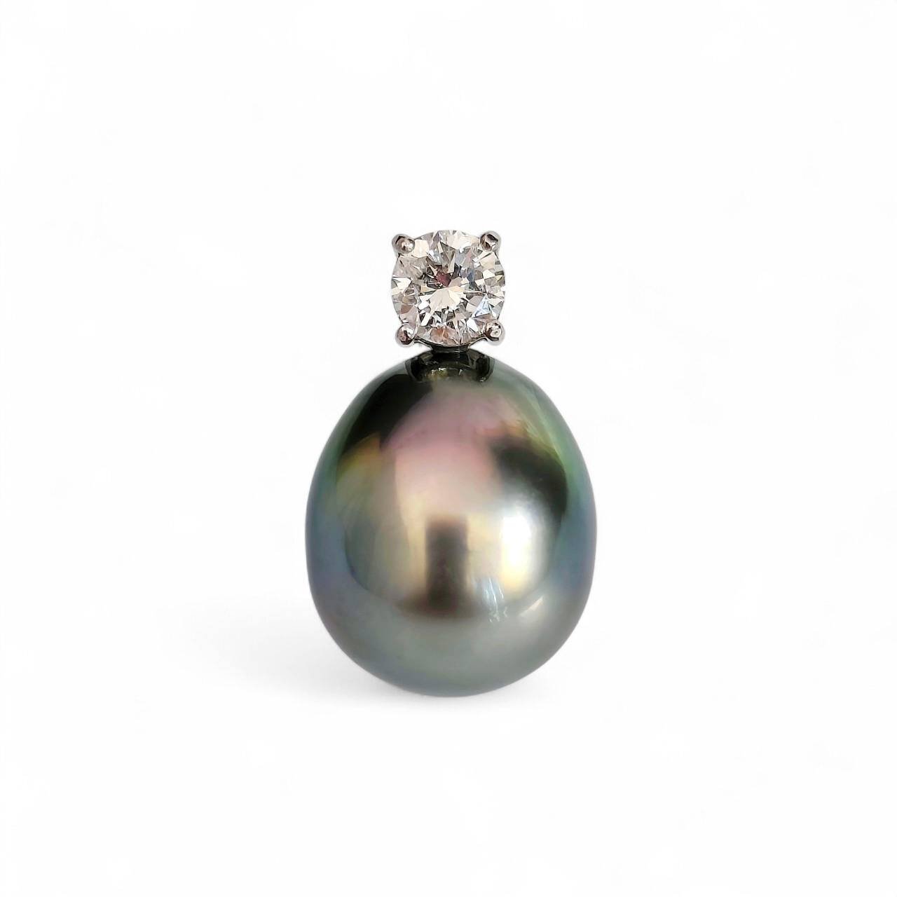 10.1 mm, Tahitian Pearl, Diamond Dot Solitaire Pearl Pendant