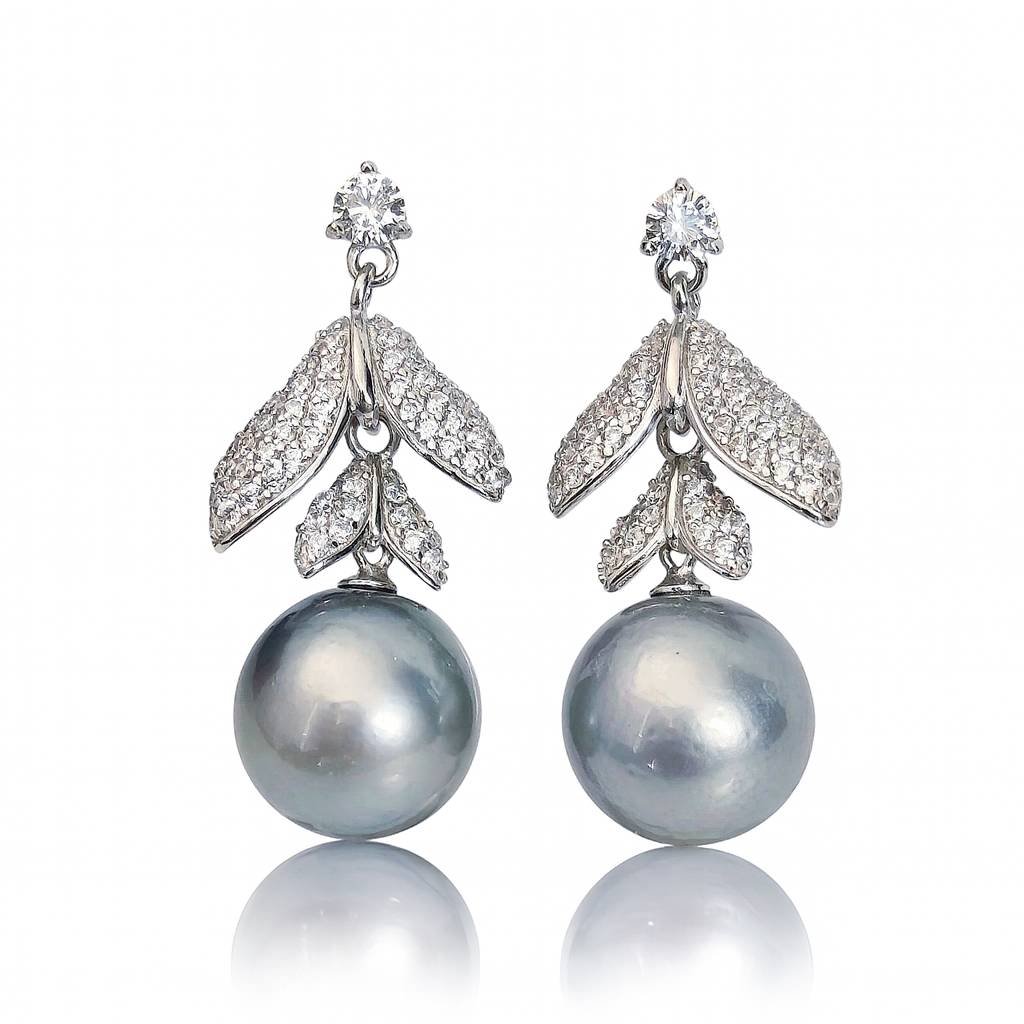 Approx. 12.0 - 12.2 mm, Tahitian Pearl, Pine Tree Dangle Pearl Stud Earrings