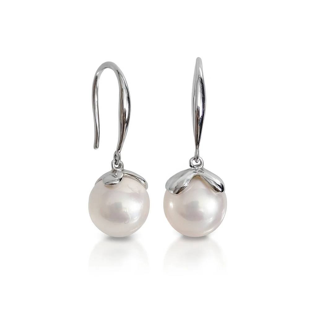Approx. 8.0 mm, Akoya Pearl, Fish Hooks Dangle Pearl Earrings