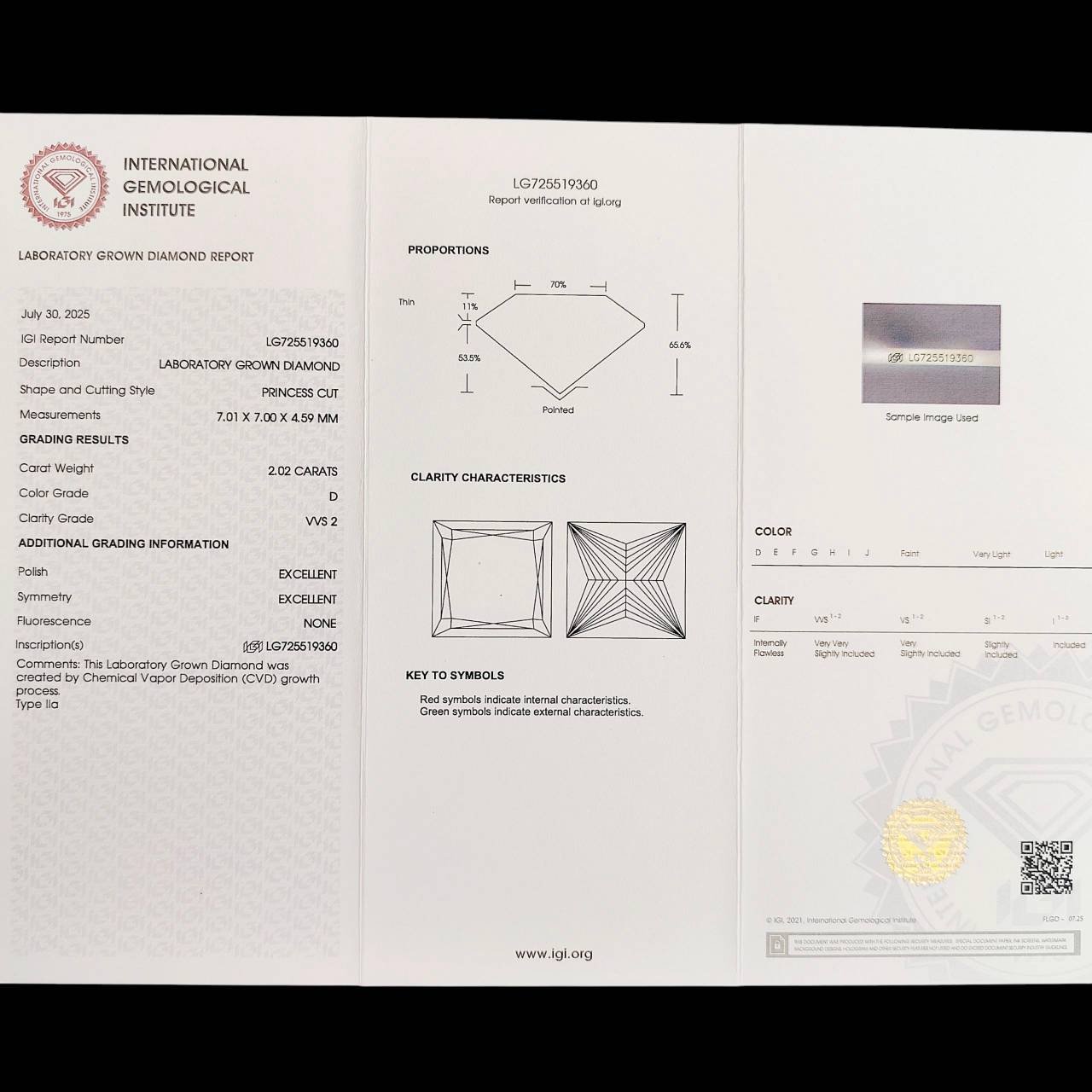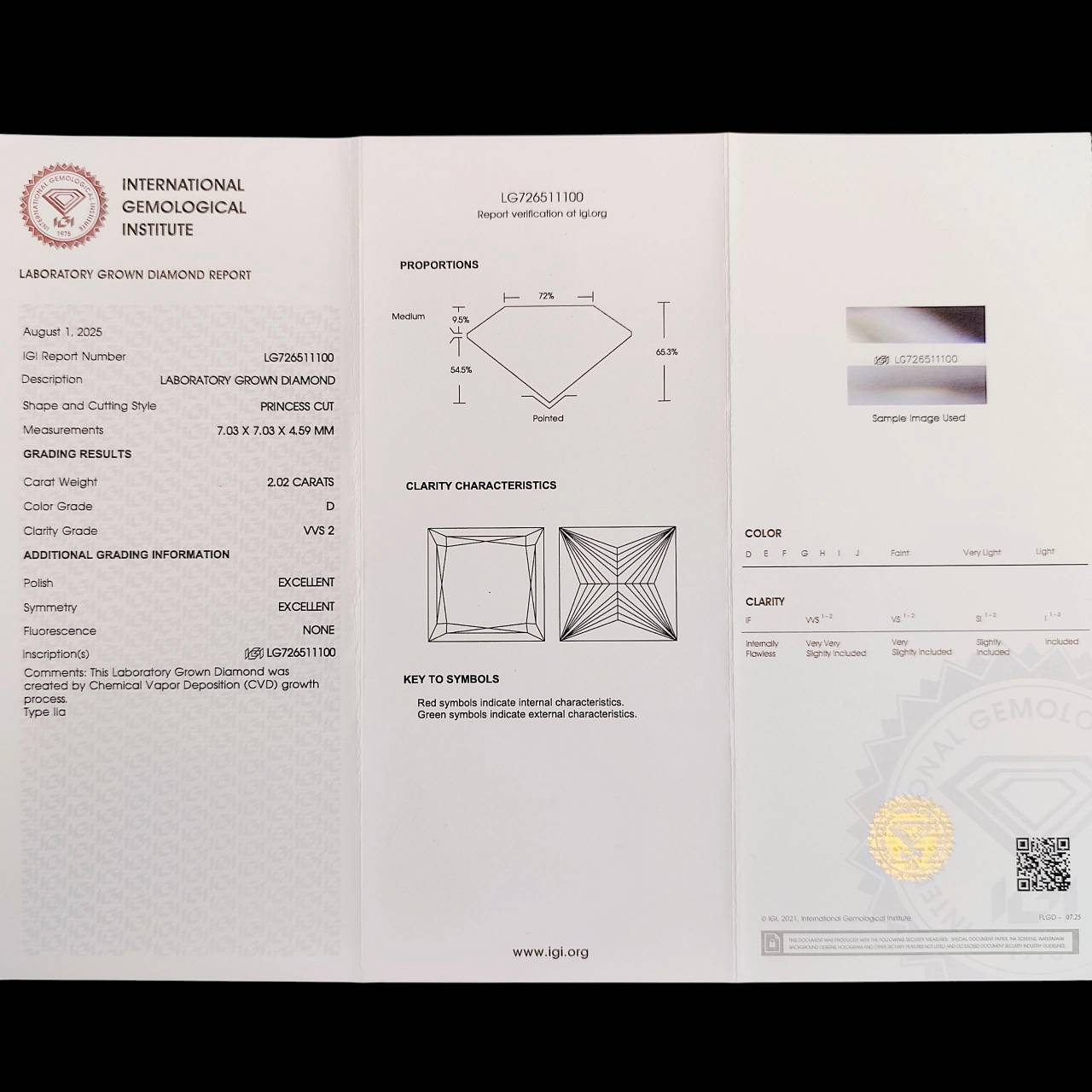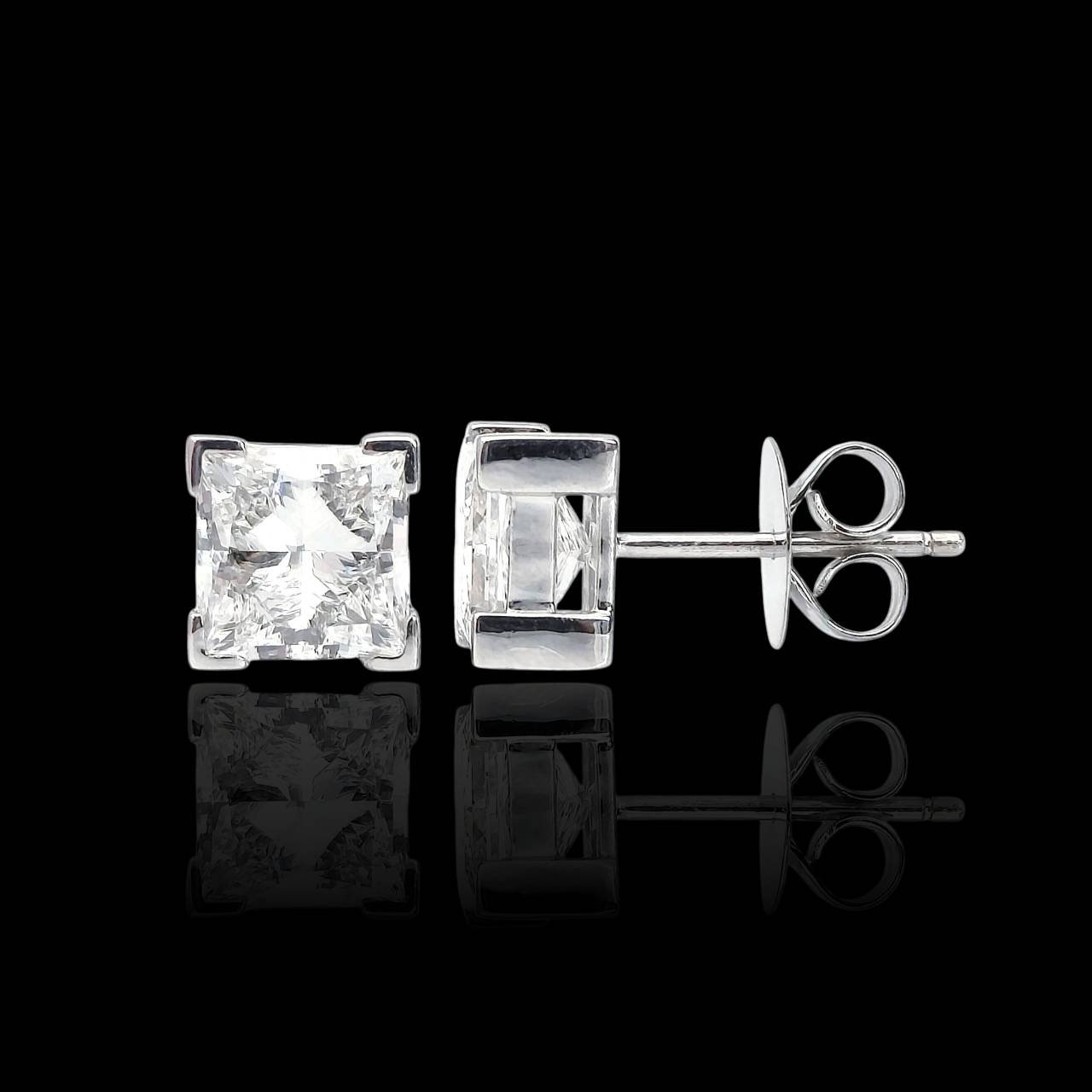 (IGI) Laboratory Grown Diamond (Princess Cut, D, VVS 2, 2.02ct.)x2, Four Prongs Solitaire Diamond Stud Earrings