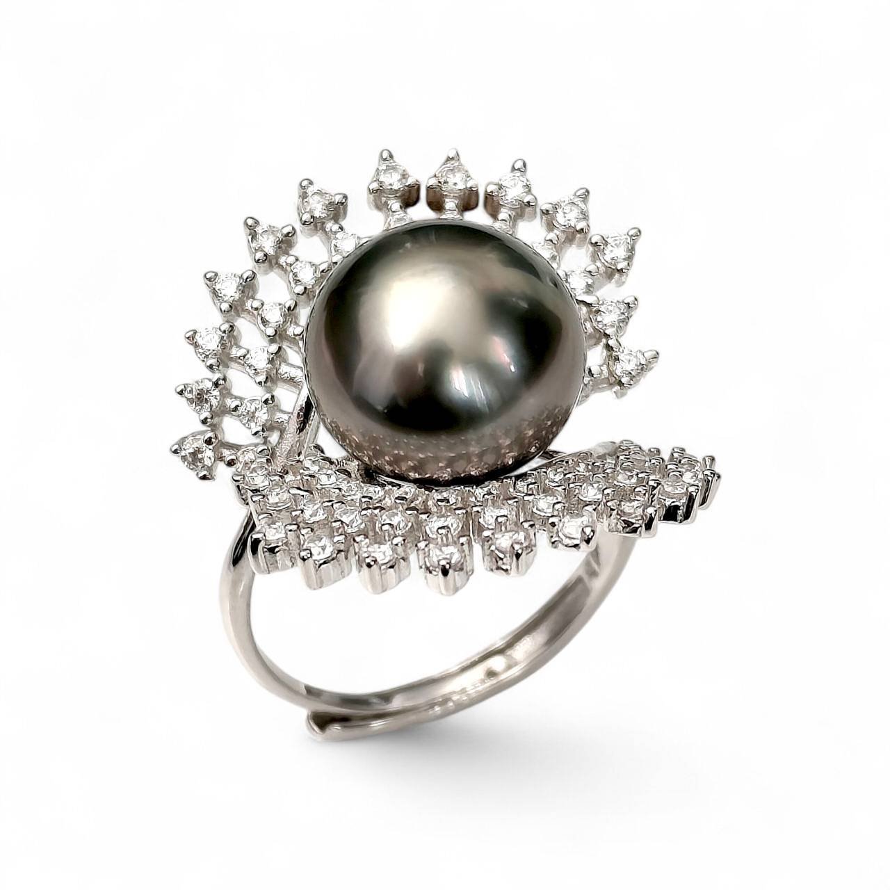 Approx. 11.5 mm, Tahitian Pearl, Peacock Tail Solitaire Pearl Ring