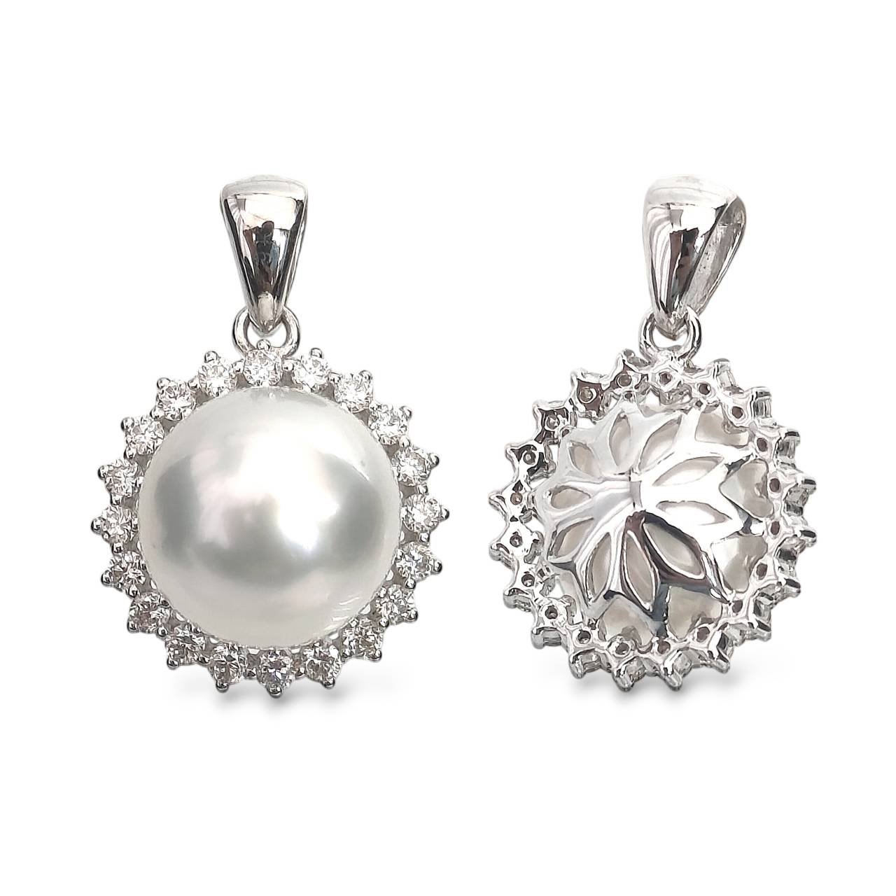 10.3 mm, White South Sea Pearl, Solitaire Pearl Halo Diamond Pendant