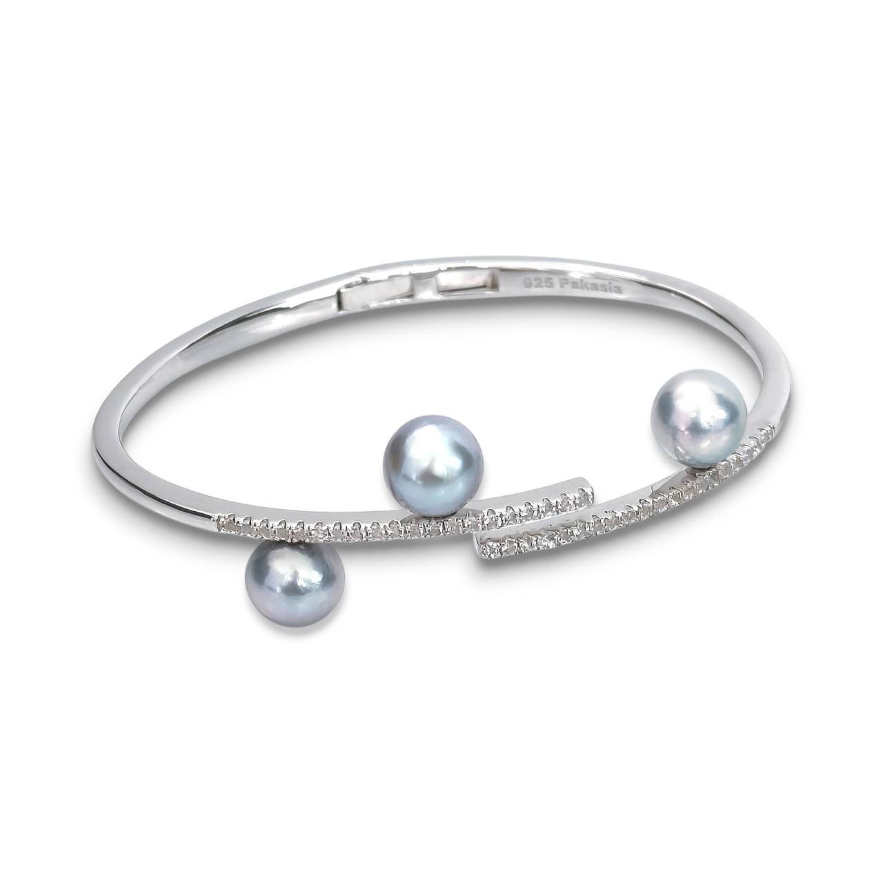 Approx. 8.0 mm, Blue Rose, Akoya Pearl, Branch Bangle Triple Pearl