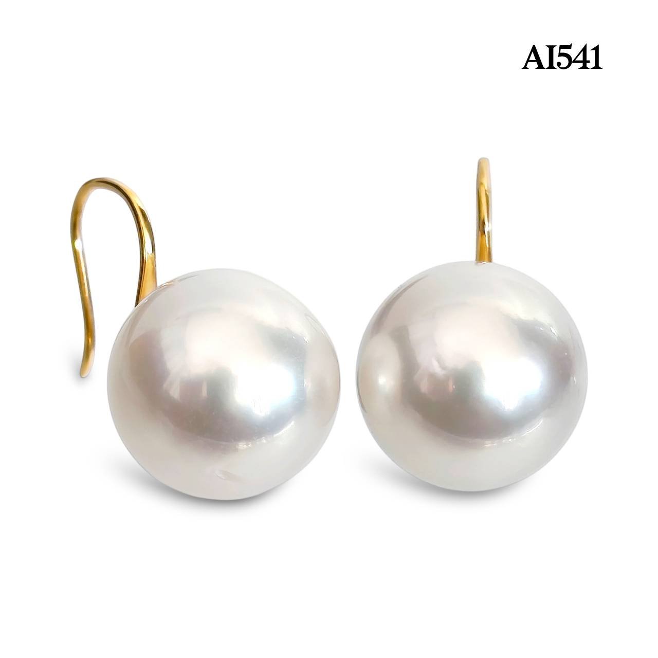 11.4 mm and 11.6 mm, White South Sea Pearl, Fish Hooks Pearl Stud Earrings