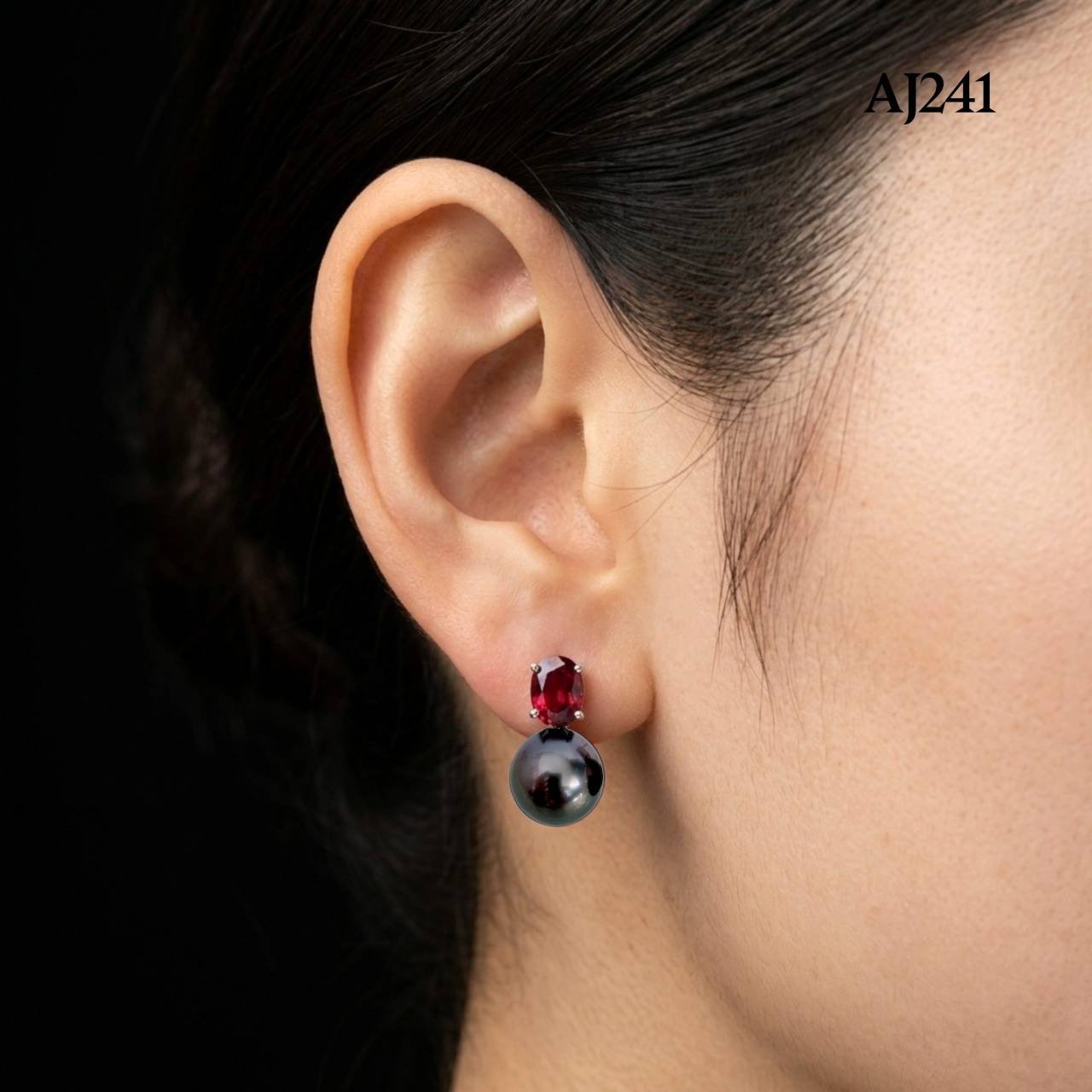 Categories : Live สด ,  By Jewelry Style ,  Earrings ,  By Pearl Type ,  Tahitian ,  By Pearl Color ,  Black Type ,  By Setting Material ,  S925 (Rhodium Plated) ,  All Pearl Products ,  By Gems ,  Garnet ,  ผังสินค้า ,  Grader ,  พี่กิ่ง ,