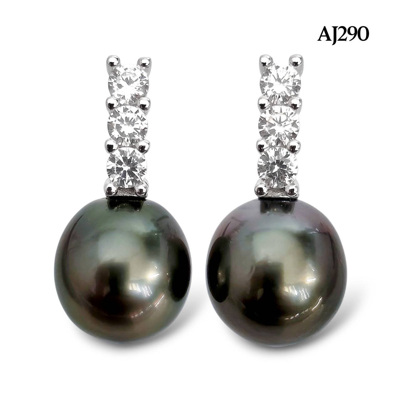 Approx. 8.0 - 9.0 mm, Tahitian Pearl, Three Stones Pearl Stud Earrings