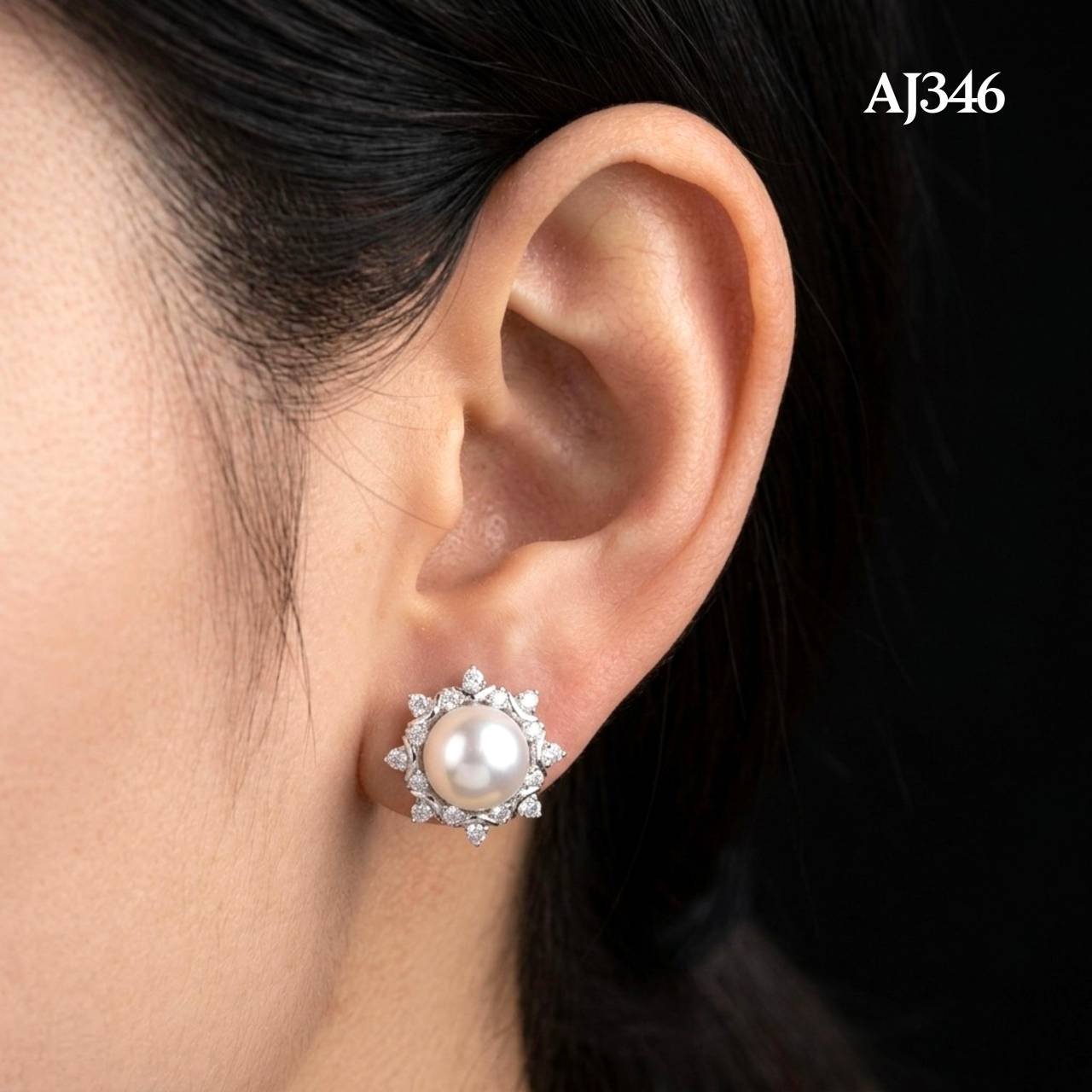 Approx. 10.0 mm, Edison Pearl, Solitaire Pearl Sun Halo Moissanite Stud Earrings