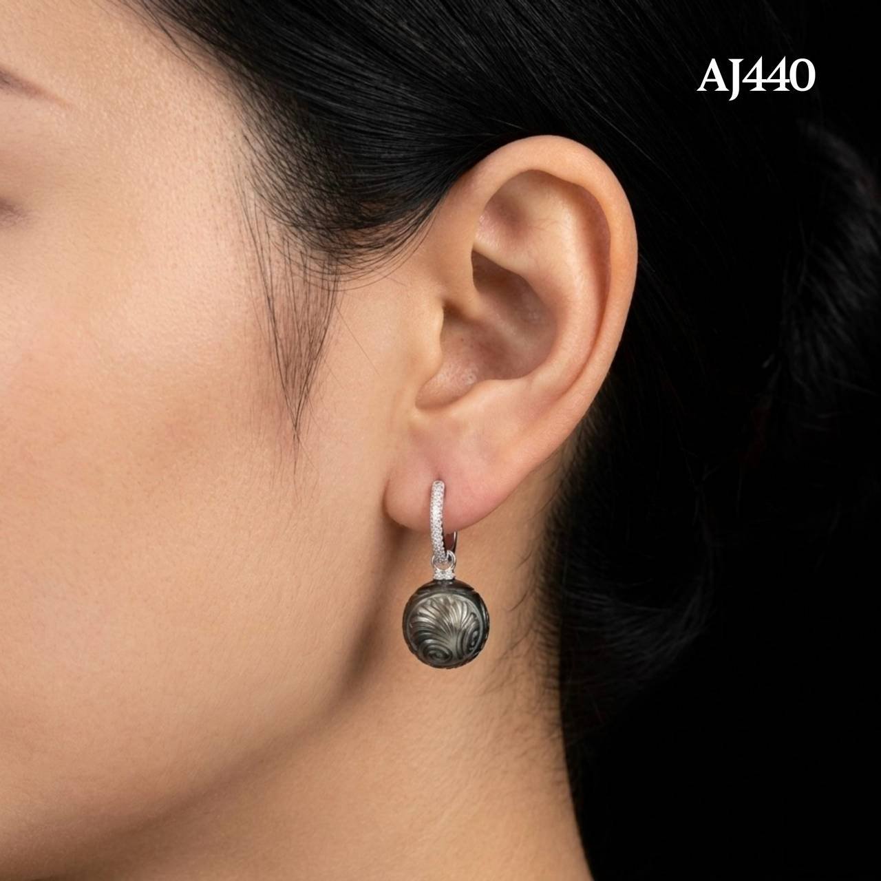 Approx. 13.0 - 14.0 mm, Tattoo Pearl, Latch Back CZ Paved Earrings with Pearl Jacket