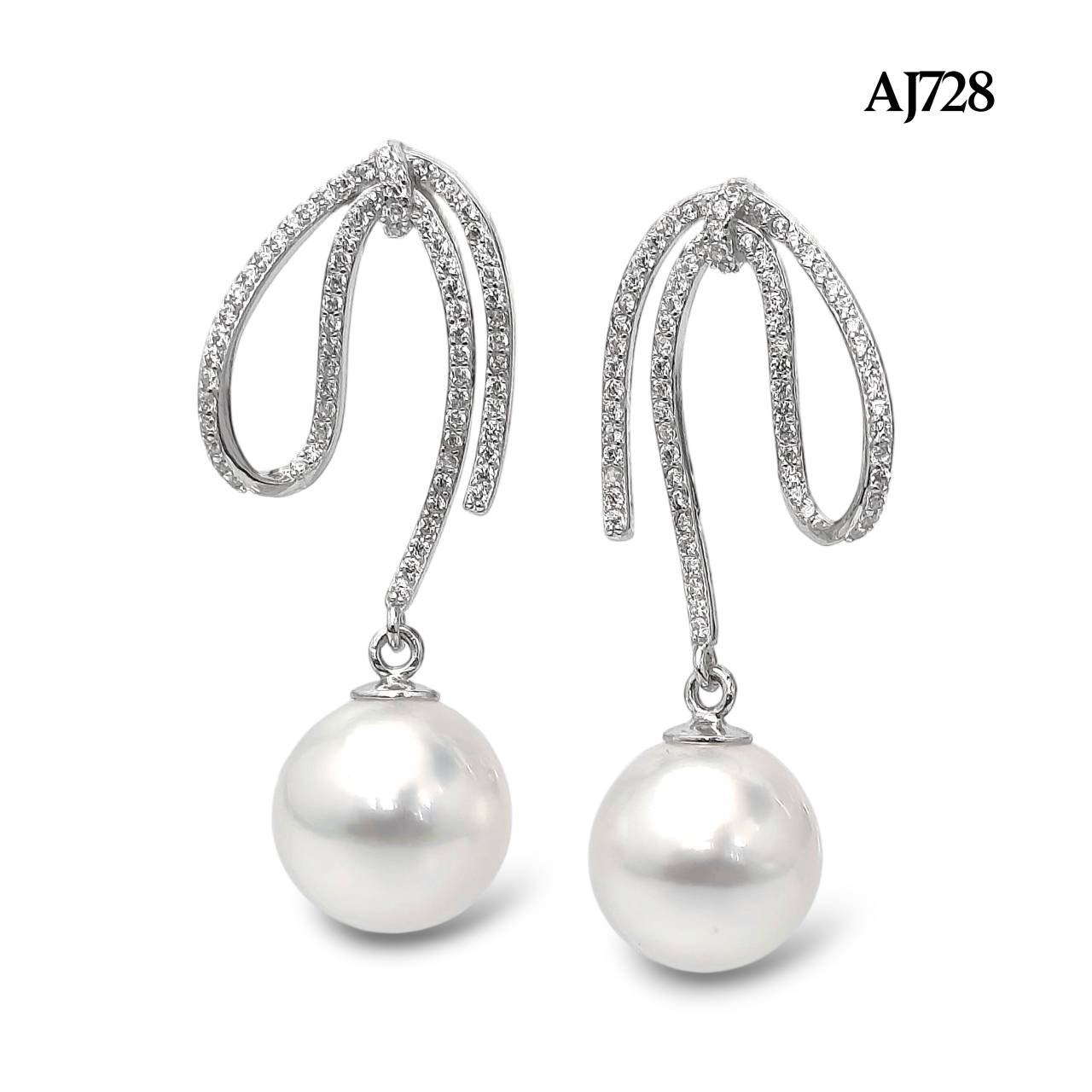 Approx. 10.0 mm, White South Sea Pearl, Bow Long Tail Dangle Pearl Stud Earrings